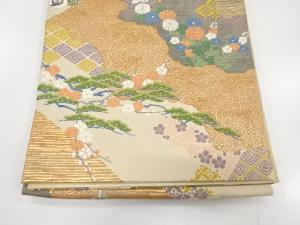 田畑喜八 鶴に松・梅・桜模様織り出し 袋帯