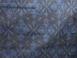 洗練された落ち着きのある色合いで、生地そのものは柔らかく、しわになりにくいと言われている。大島紬の特徴とも言える、織締めと呼ばれる技法で藍を用いて染められた糸を使用している。