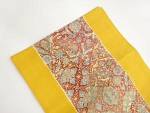 手織り紬手描き切り嵌め風華紋・花唐草模様開き名古屋帯(額縁仕立て)