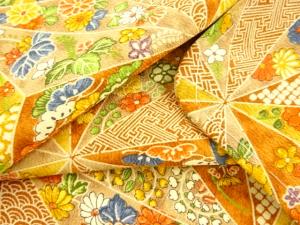 麻の葉に草花模様小紋着物