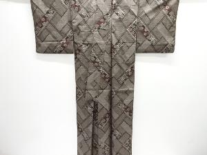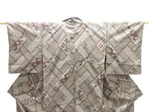 大特価品 幾何学に花模様織り出し本場泥大島紬着物(5マルキ)