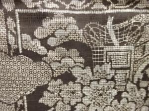 アンティーク 御所車に花模様織出し本場泥大島紬着物(割り込み絣)
