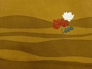 縮緬地金彩菊に変わり横段模様開き名古屋帯(額縁仕立て)