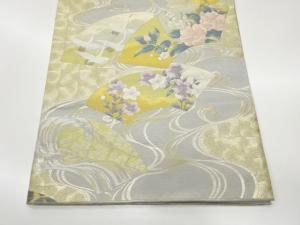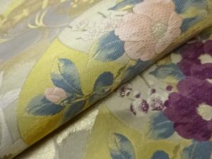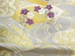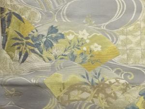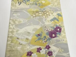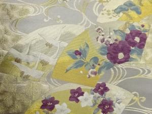 じゅらく製 帝王紫花々・松竹梅・鶴に地紙・流水模様織出し袋帯