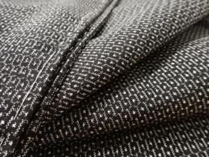 洗練された落ち着きのある色合いで、生地そのものは柔らかく、しわになりにくいと言われている。大島紬の特徴とも言える、織締めと呼ばれる技法で藍を用いて染められた糸を使用している。