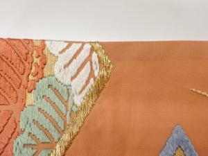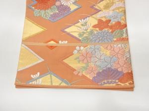唐織松皮菱に草花模様織出し袋帯