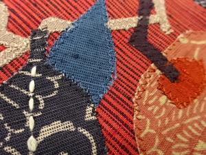 未使用品 手織り紬パッチワーク刺し子果実模様名古屋帯