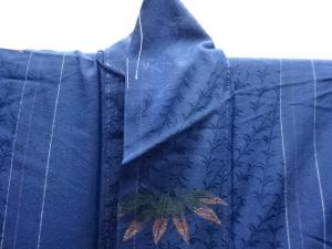 大正ロマン 紋錦紗縞に笹模様織り出し漆着物