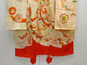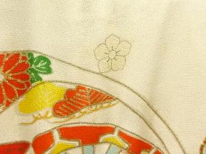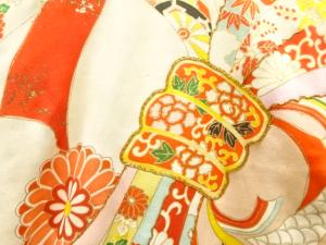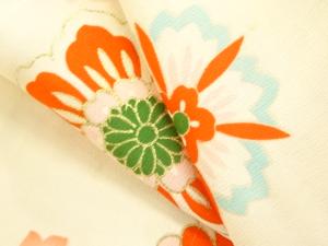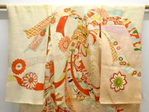 アンティーク 錦紗束ね熨斗に花古典柄刺繍五つ紋着物