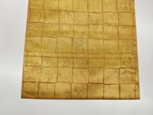 高島織物製 青銅箔縅毛に格子・菊・古典柄模様織出し名古屋帯