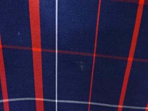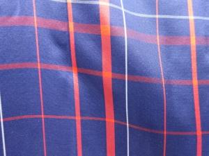 洗練された落ち着きのある色合いで、生地そのものは柔らかく、しわになりにくいと言われている。大島紬の特徴とも言える、織締めと呼ばれる技法で藍を用いて染められた糸を使用している。