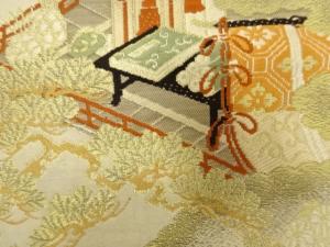 アンティーク 笠松に枝梅・菊・城模様織り出し丸帯(材料)