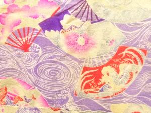 アンティーク 江戸縮緬 扇面に蝶・草花模様長襦袢
