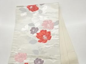 山茶花模様織出し開き名古屋帯(額縁仕立て)