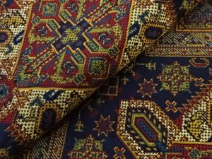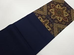 変わり華紋に菱・幾何学模様織出し開き名古屋帯(額縁仕立て)
