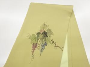 作家物 縮緬地金彩手描き葡萄模様開き名古屋帯(額縁仕立て)