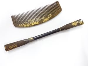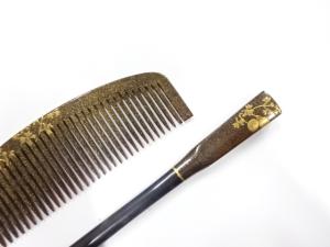 アンティーク 本鼈甲 漆塗り蒔絵 櫛・笄セット