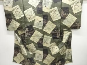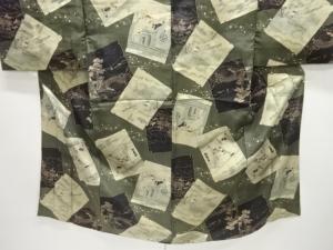 アンティーク 破れ色紙に職人絵合模様男物長襦袢
