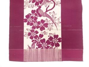 アンティーク 本場筑前博多 桜に尾長鳥模様織り出し 八寸帯地反物