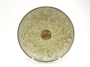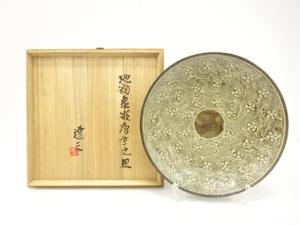 人間国宝 島岡達三造 地釉 象嵌 唐草文 皿