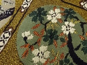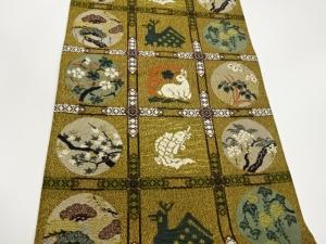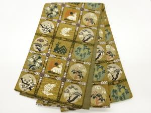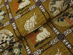 うさぎ・魚・花葉・格天井模様織出し袋帯