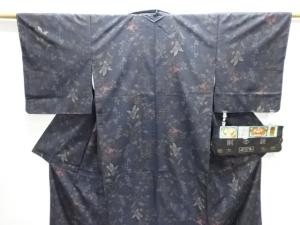 未使用品 仕立て上がり 窪田織物製 枝花模様織り出し本場泥大島紬着物(7マルキ)