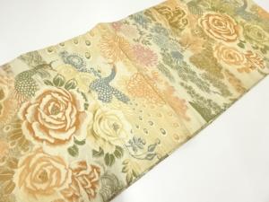 アンティーク 花鳥模様織出し丸帯(材料)