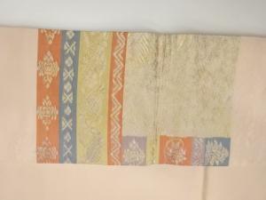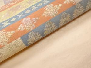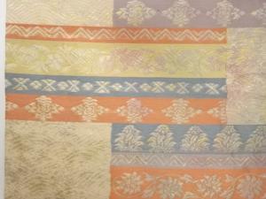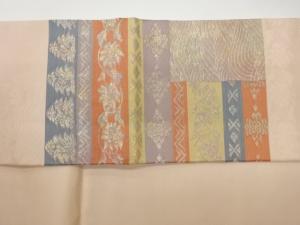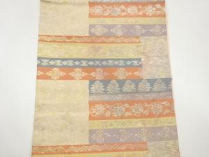 小林定織物製 引箔横段に花唐草・波模様織出し名古屋帯