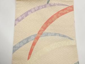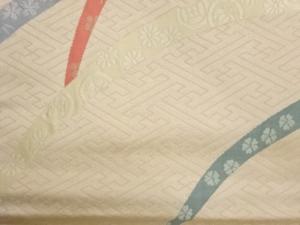 木原織物製 露芝に花々・紗綾形模様織出し名古屋帯