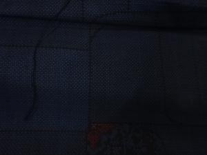洗練された落ち着きのある色合いで、生地そのものは柔らかく、しわになりにくいと言われている。大島紬の特徴とも言える、織締めと呼ばれる技法で藍を用いて染められた糸を使用している。