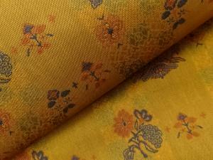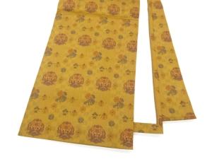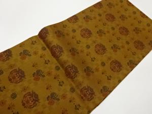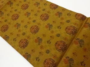 向かい鳥・草花模様織出し開き名古屋帯(額縁仕立て)