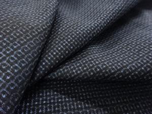 洗練された落ち着きのある色合いで、生地そのものは柔らかく、しわになりにくいと言われている。大島紬の特徴とも言える、織締めと呼ばれる技法で藍を用いて染められた糸を使用している。