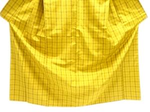 島の植物を用いて糸を黄色、鳶色、黒に染め、昔ながらの高機で平織り・綾織りに織り、縞模様や格子模様を作ったもの。八丈島では室町時代から絹を貢いでいた記録があり、江戸時代の中期以後から粋な縦縞、格子縞が織られるようになった。渋みのある優雅な色合いで人気がある。