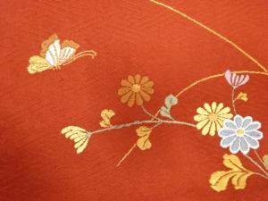 蝶に草花模様織り出し 開き名古屋帯(額縁仕立て)