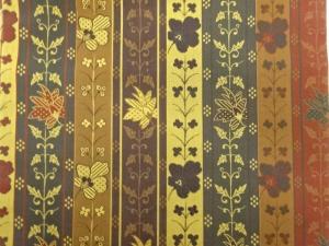 縞に花葉模様織出し開き名古屋帯(額縁仕立て)