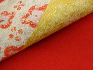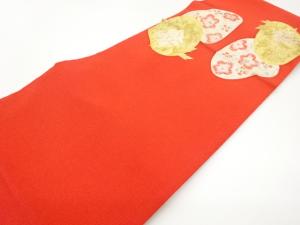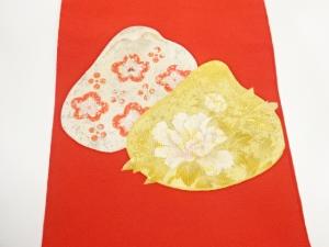 上代紬金銀彩貝合わせに牡丹・梅模様開き名古屋帯(額縁仕立て)