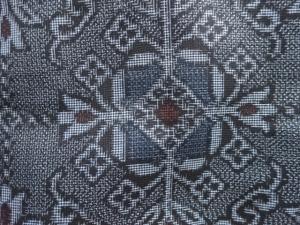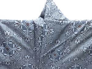 洗練された落ち着きのある色合いで、生地そのものは柔らかく、しわになりにくいと言われている。大島紬の特徴とも言える、織締めと呼ばれる技法で藍を用いて染められた糸を使用している。