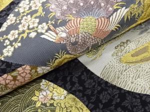 地紙に花鳥・花菱・荒波模様織出し袋帯