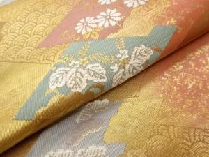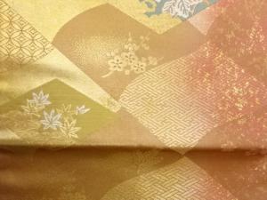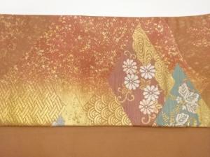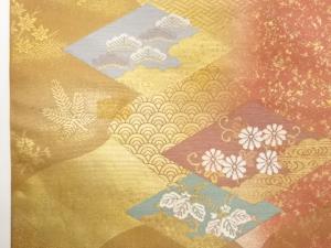 引箔菱に花唐草・松・古典柄模様織出し名古屋帯