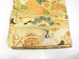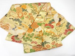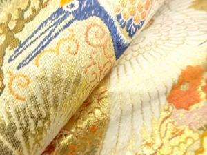 アンティーク 鶴に桧扇・菊・笠松・梅模様織り出し丸帯(材料)