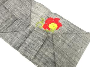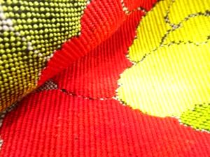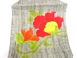 手織り真綿紬 牡丹唐草模様織り出し 名古屋帯