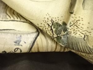 アンティーク 破れ色紙に屋敷風景模様肩裏紋付羽二重男物羽織