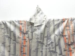 未使用品 竹笹模様織り出し本場白大島紬着物(7マルキ)
