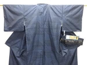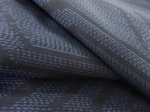 洗練された落ち着きのある色合いで、生地そのものは柔らかく、しわになりにくいと言われている。大島紬の特徴とも言える、織締めと呼ばれる技法で藍を用いて染められた糸を使用している。