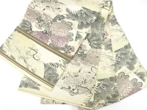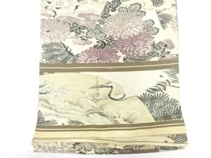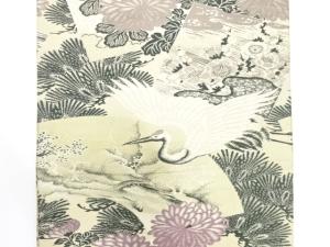アンティーク 鶴に松梅・菊模様織り出し丸帯(材料)