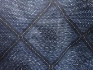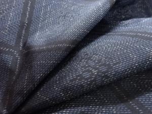 洗練された落ち着きのある色合いで、生地そのものは柔らかく、しわになりにくいと言われている。大島紬の特徴とも言える、織締めと呼ばれる技法で藍を用いて染められた糸を使用している。