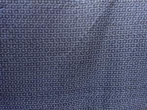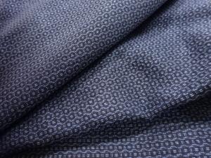 洗練された落ち着きのある色合いで、生地そのものは柔らかく、しわになりにくいと言われている。大島紬の特徴とも言える、織締めと呼ばれる技法で藍を用いて染められた糸を使用している。