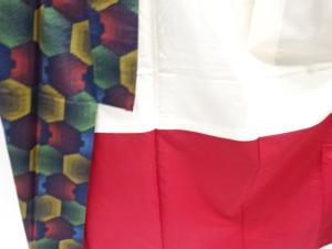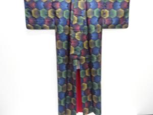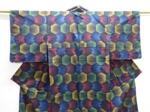 未使用品 変わり亀甲模様織り出し手織り紬着物