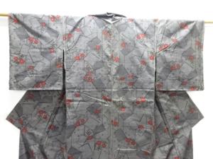 未使用品 花に色紙散らし模様織り出し手織り紬着物