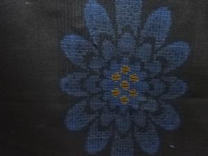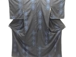 洗練された落ち着きのある色合いで、生地そのものは柔らかく、しわになりにくいと言われている。大島紬の特徴とも言える、織締めと呼ばれる技法で藍を用いて染められた糸を使用している。